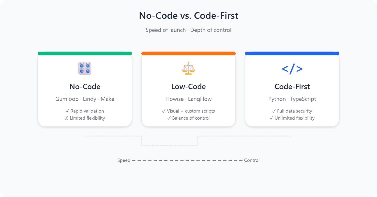 Expert Tip: No-code is great for prototypes, but code-first gives you full control over data and logic.